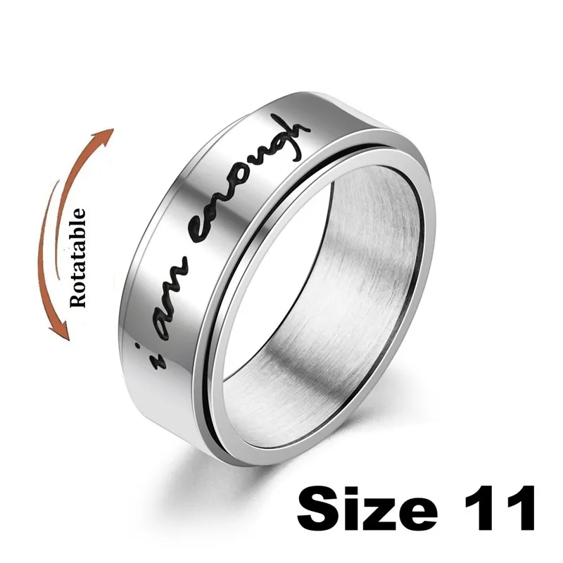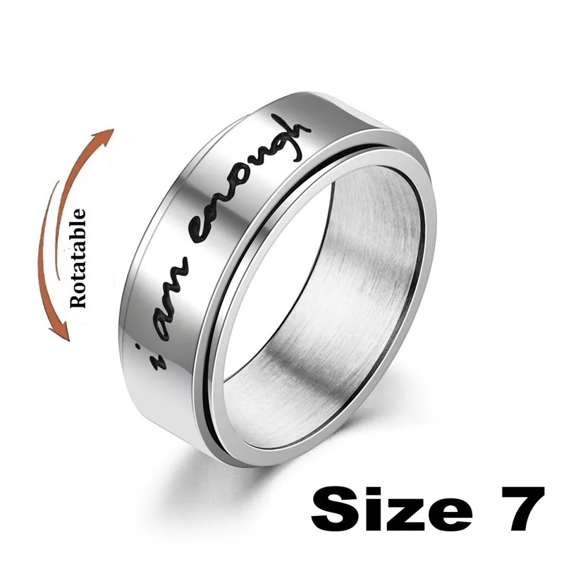 Anxiety Fidget Spinner Rings Carved Words I am Enough Stainless Steel Relaxing Ring for Male Anti Stress Accessories Jewelry
